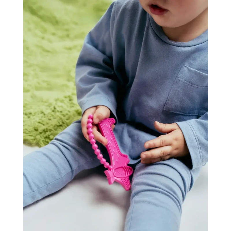 Miękka struktura gryzaka delikatnie masuje zarówno przednie, jak i tylne dziąsła, przynosząc ulgę w trudnych momentach. Zróżnicowane faktury i kształty stymulują zmysły, zachęcając malucha do eksploracji i samodzielnej zabawy. Produkt został wykonany z wysokiej jakości, nietoksycznych materiałów, wolnych od BPA i ftalanów, co gwarantuje pełne bezpieczeństwo użytkowania.