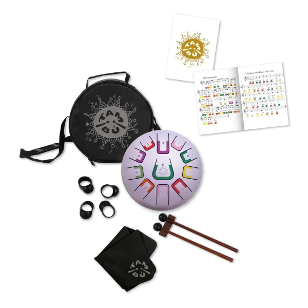 Tambú to nowoczesny bębenek językowy, stworzony z myślą o użytkownikach w każdym wieku. Pozwala cieszyć się tworzeniem harmonijnych melodii już od pierwszego użycia – bez potrzeby wcześniejszej nauki. Dzięki systemowi oznaczeń kolorystycznych i cyfrowych, nauka gry jest intuicyjna i przyjemna.