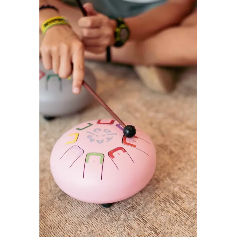 Baby Tambu to kompaktowa wersja bestsellerowego bębenka językowego Tambu, stworzonego specjalnie dla dzieci rozpoczynających swoją przygodę z muzyką. Jego ergonomiczny, okrągły kształt o średnicy 15 cm sprawia, że jest idealny dla małych rączek, a 8 tonów pozwala na tworzenie pierwszych melodii 🎼. Relaksujące, aksamitne brzmienie zachęca dziecko do odkrywania dźwięków i eksperymentowania z muzyką.