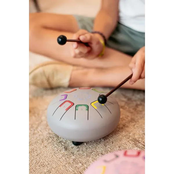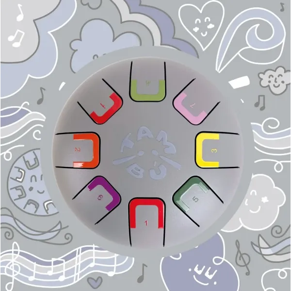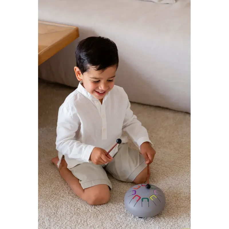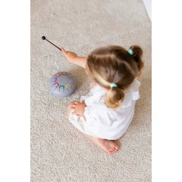 Baby Tambu to kompaktowa wersja bestsellerowego bębenka językowego Tambu, stworzonego specjalnie dla dzieci rozpoczynających swoją przygodę z muzyką. Jego ergonomiczny, okrągły kształt o średnicy 15 cm sprawia, że jest idealny dla małych rączek, a 8 tonów pozwala na tworzenie pierwszych melodii 🎼. Relaksujące, aksamitne brzmienie zachęca dziecko do odkrywania dźwięków i eksperymentowania z muzyką.