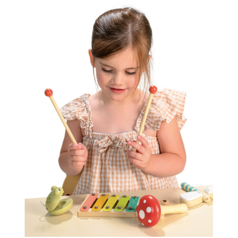 Leśny zestaw muzyczny to wyjątkowa kolekcja instrumentów, które wprowadzą dzieci w magiczny świat dźwięków przyrody! W zestawie znajdują się: miś-ksylofon o ciepłym, melodyjnym brzmieniu, ważka-klakier, która wydaje charakterystyczne, rytmiczne dźwięki, marakas w kształcie muchomora, dodający leśnej energii do każdej melodii, oraz żabka-klaskacz, która świetnie uzupełni każdą muzyczną improwizację.