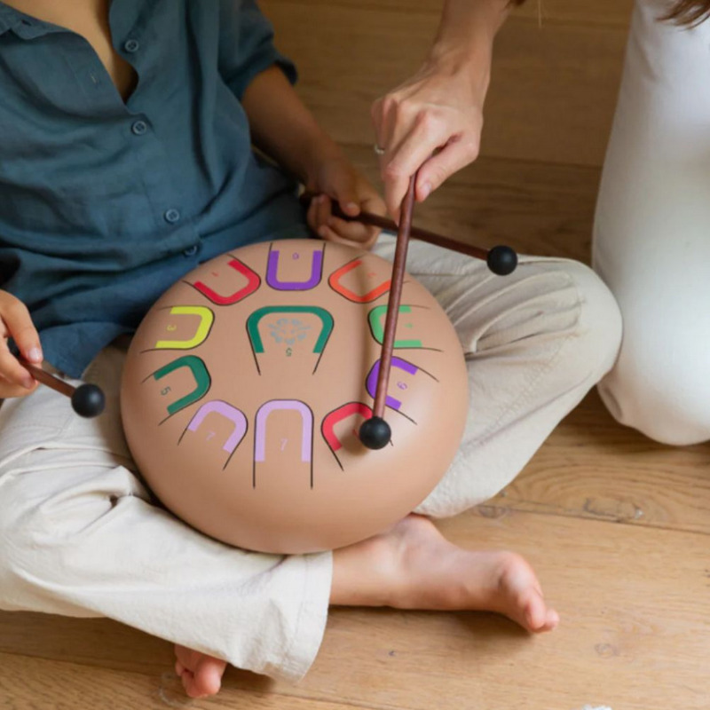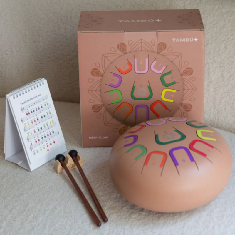 Dzięki 11 dźwiękom w skali durowej (F-dur), TAMBÚ+ pozwala na tworzenie prostych melodii już od pierwszych prób. Można na nim grać pałeczkami, dłońmi lub eksperymentować z różnymi technikami. Do zestawu dołączono kolorowe i numerowane nuty, które ułatwiają naukę nawet najmłodszym muzykom.