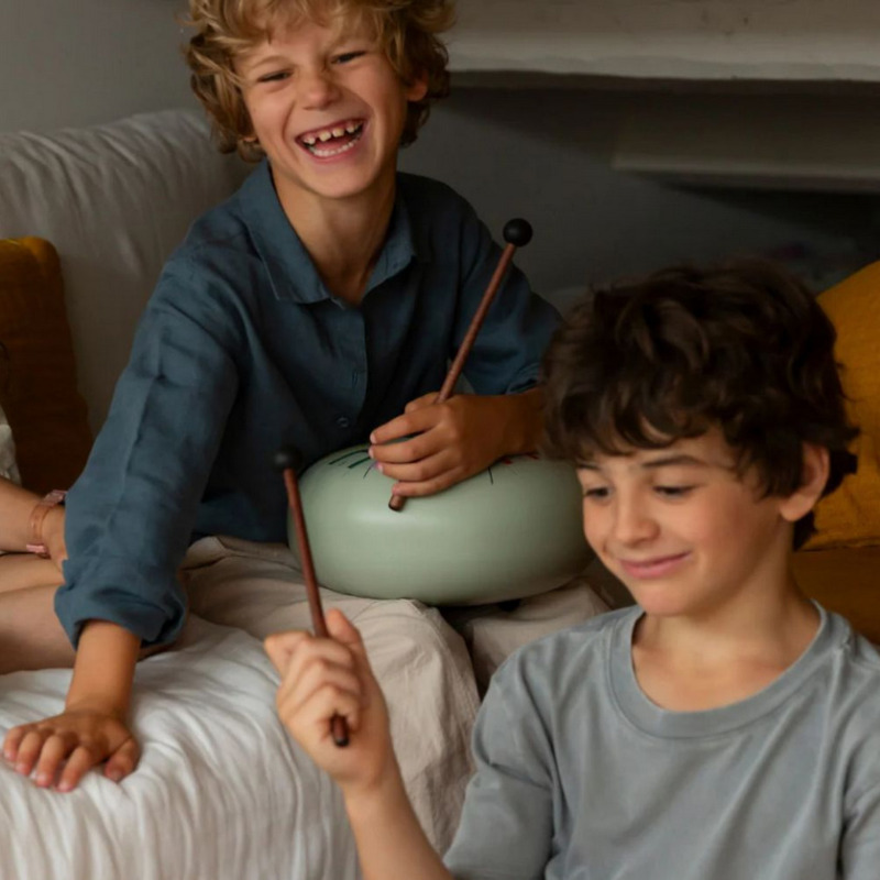 TAMBÚ+ o średnicy 25 cm to wyjątkowy instrument perkusyjny, który wprowadza dzieci i dorosłych w świat muzyki w sposób naturalny i relaksujący. Jego aksamitne brzmienie sprawia, że często wykorzystywany jest podczas warsztatów wyciszających i zajęć sensorycznych.