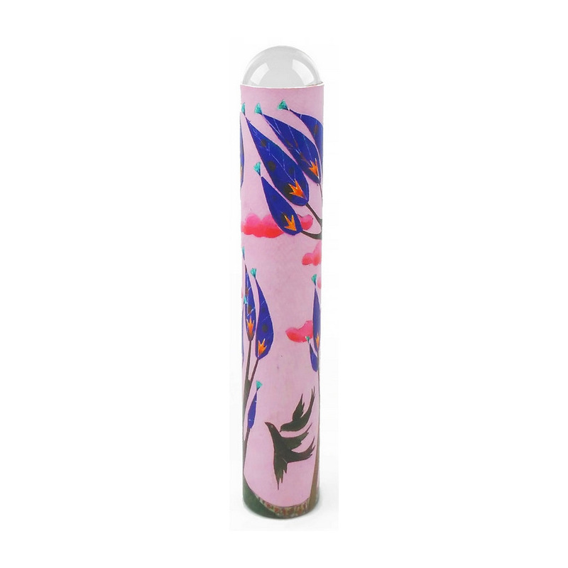 Tradycyjna i znana na całym świecie zabawka w nowej odsłonie. Kalejdoskop wykonany jest z bardzo twardej tektury i soczewki. Przeróżne wzory tworzą się poprzez patrzenie przez kalejdoskop na różne powierzchnie.