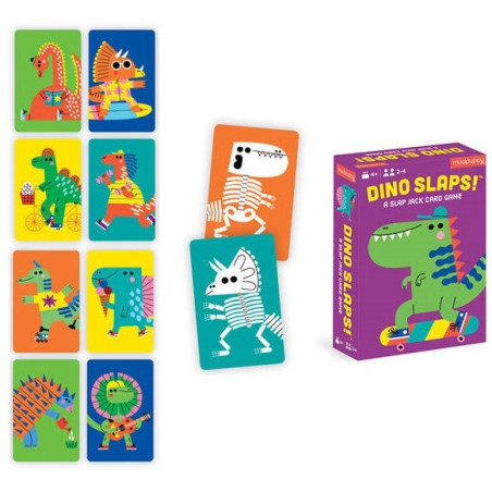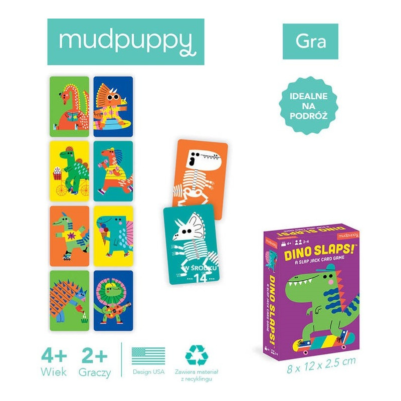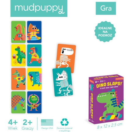 Składa się z talii kart z zabawnymi dinozaurami na kolorowych tłach.