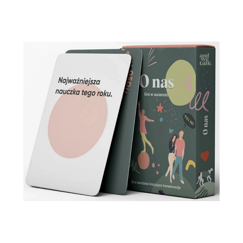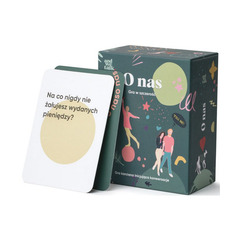 Przenieś wspólne rozmowy na nowy, wyższy poziom z O nas - to emocjonująca gra karciana, która służy do rozpoczęcia ważnych i znaczących rozmów. Zawiera 80 kart, które pozwolą Tobie i Twoim bliskim spojrzeć na relacje i siebie nawzajem z zupełnie nowej perspektywy. Daj się zainspirować! Aby rozpocząć, potrzebne są przynajmniej dwie osoby, a po chwili zauważysz, że to wcale nie jest gra - Wy po prostu rozmawiacie.