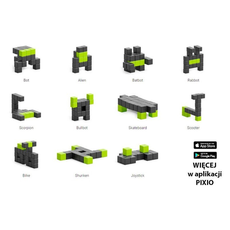 - 24 klocki PIXIO w 2 kolorach, które ożywią wyobraźnię dziecka