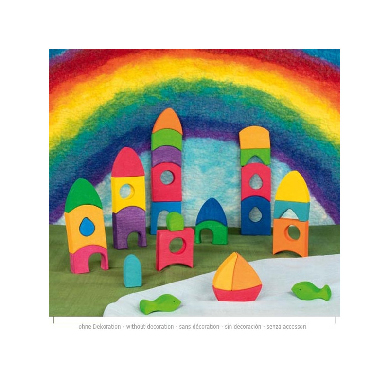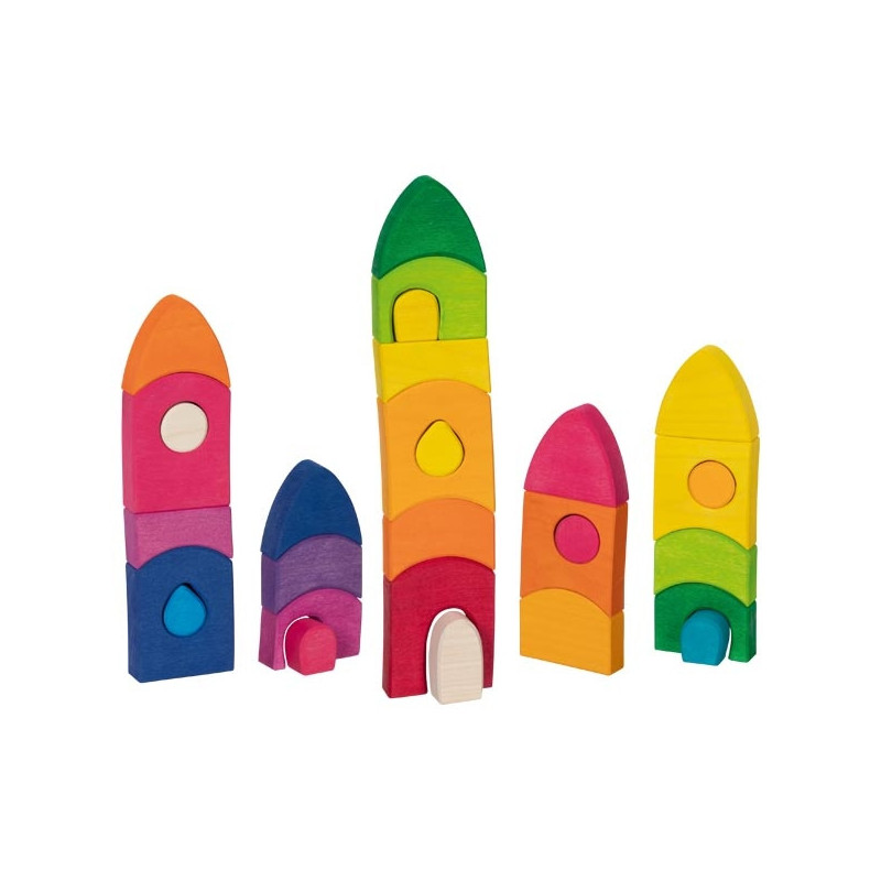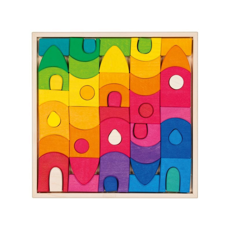 TĘCZOWE DOMKI drewniana mozaika klocki 50 elem.