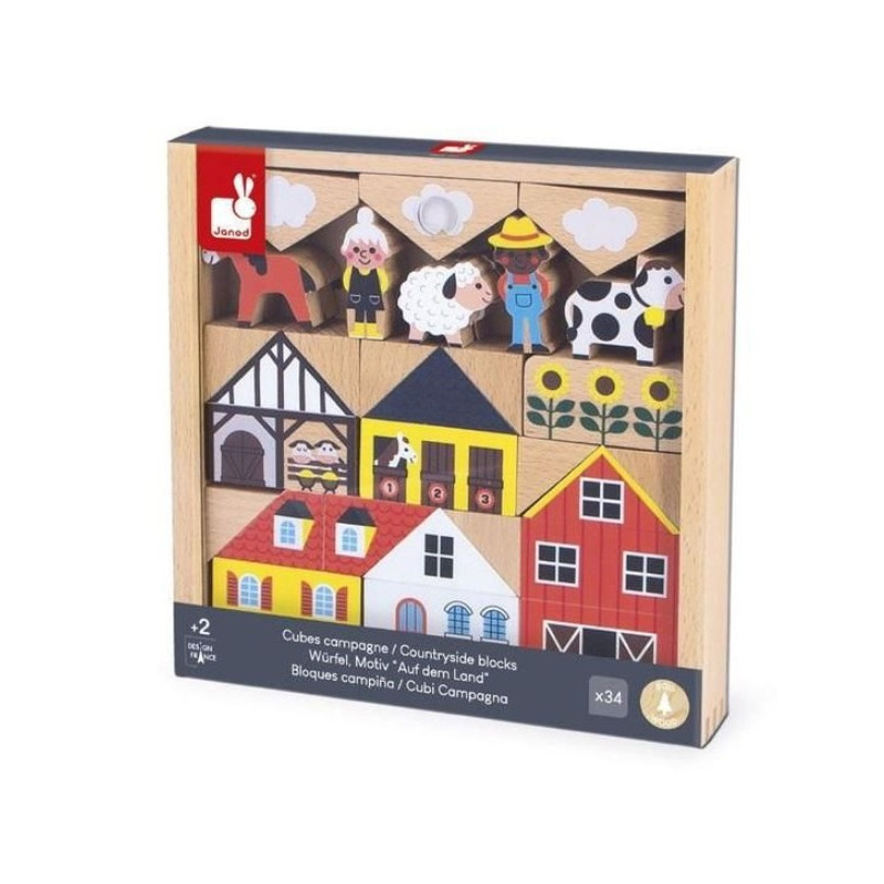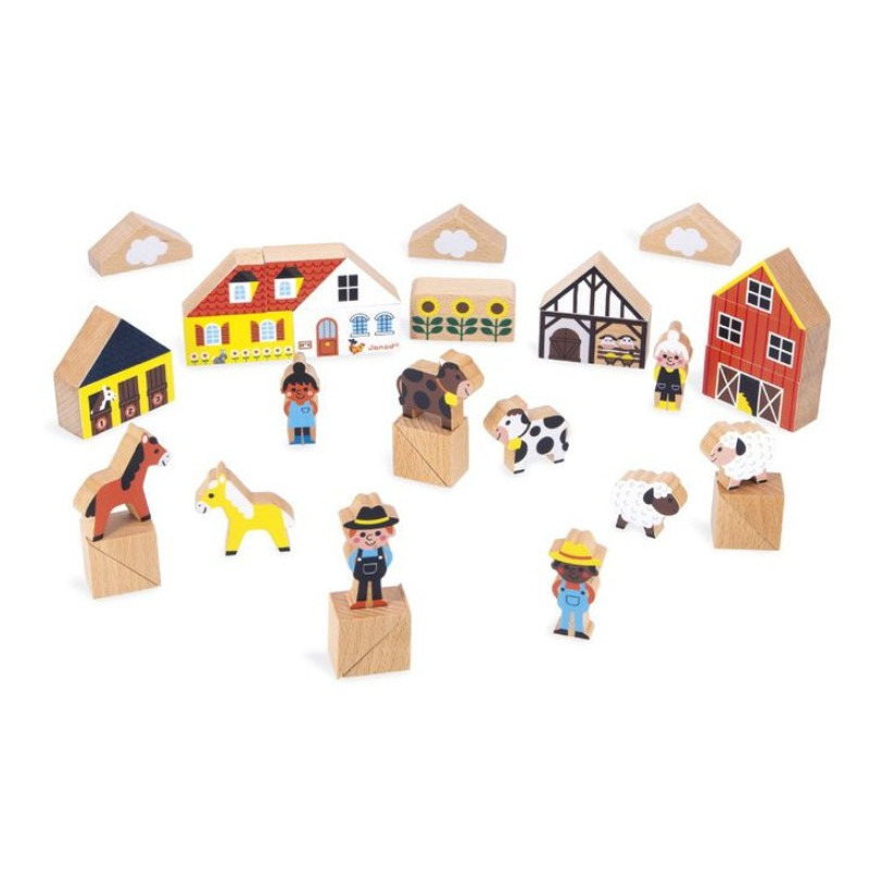 WIEŚ zestaw drewnianych klocków i figurek 34 el. farma Cross Roads Janod 2+