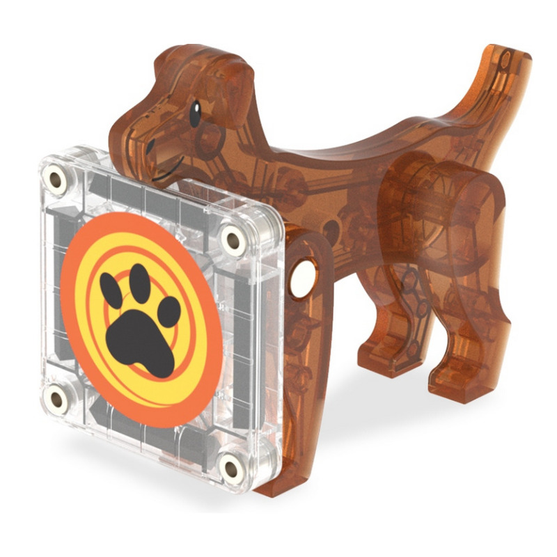 W skład zestawu wchodzą: 13 magnetycznych elementów, w tym figurka pieska.