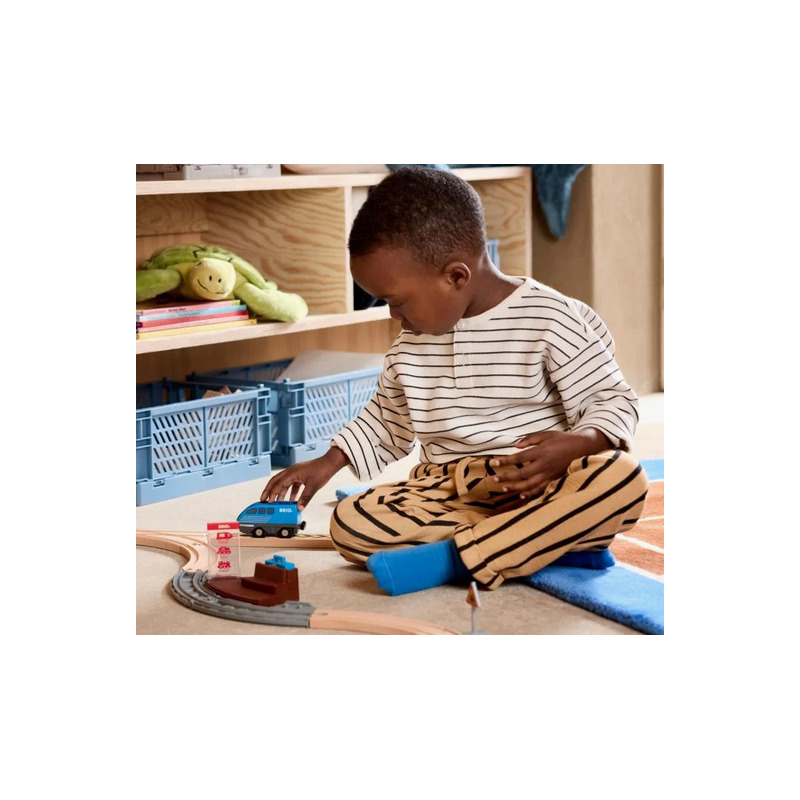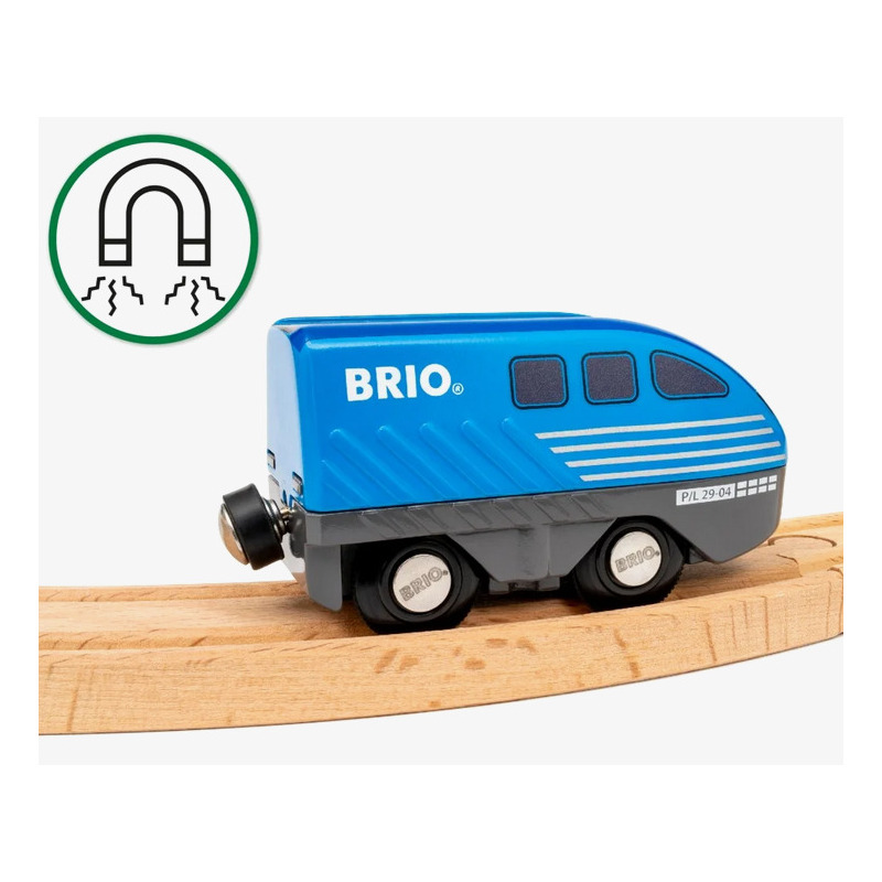 Lokomotywa typu "pociągnij i puść" jest pojazdem, który porusza się po drewnianych torach Brio. Zabawka podkręci akcję Twoich kolejowych zestawów. Nie potrzeba baterii - wystarczy pociągnąć, puścić i patrzeć, jak jedzie! Z tak napędzanym pojazdem nigdy nie zabraknie energii! Niebieska lokomotywa przekształca energię Twojego dziecka w siłę pociągową dzięki funkcji naciągania. Pociąg posiada klasyczne złącze magnetyczne do łatwego łączenia z wagonikami Brio (sprzedawane oddzielnie).
