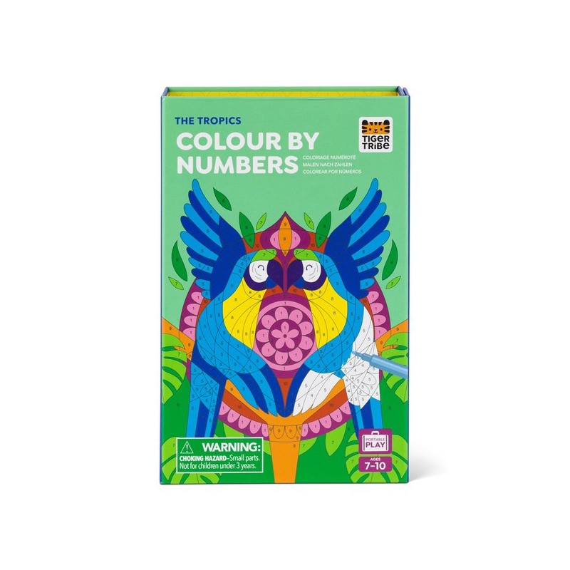 Kolorowanie po numerach - W Tropikach od Tiger Tribe to uroczy zestaw do kolorowania przeznaczony dla kreatywnych dzieci, które lubią mieć pewne wskazówki dotyczące ich artystycznej eksploracji. Zabierz ze sobą w podróż!