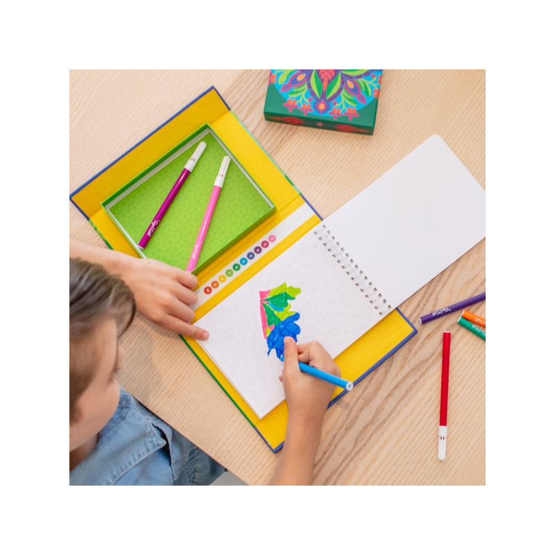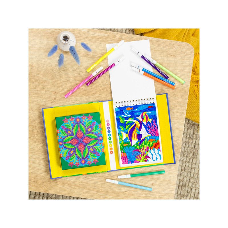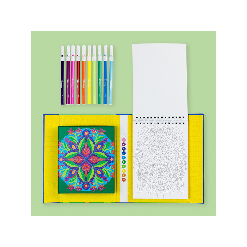 - 36x ilustrowanych stron do kolorowania, klucz kolorów, 10x kolorowych flamastrów
