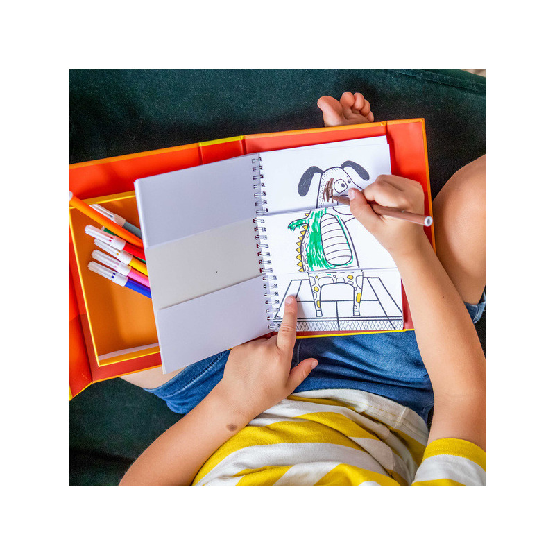 - 32x strony do kolorowania na spiralkach, 10x markerów, 4x puste strony do swobodnego rysowania, magnetyczne pudełko do przechowywania