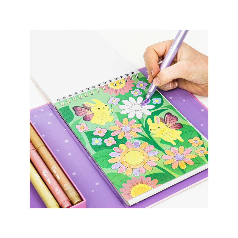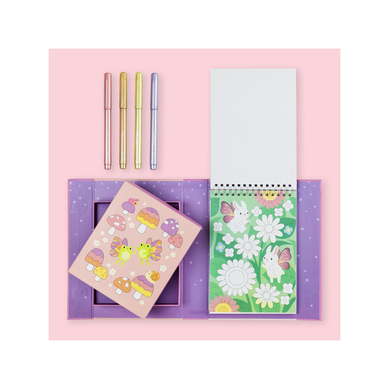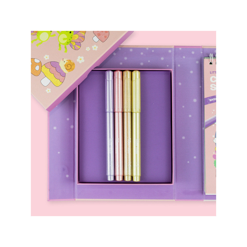 Zestaw Błyszczących Kolorowanek – Kraina Wróżek od Tiger Tribe to kreatywny zestaw do kolorowania z motywami ze świata magicznych stworzeń. W zestawie znajdują się 4 płynne, błyszczące flamastry, nadające kolorowankom niezwykły charakter!