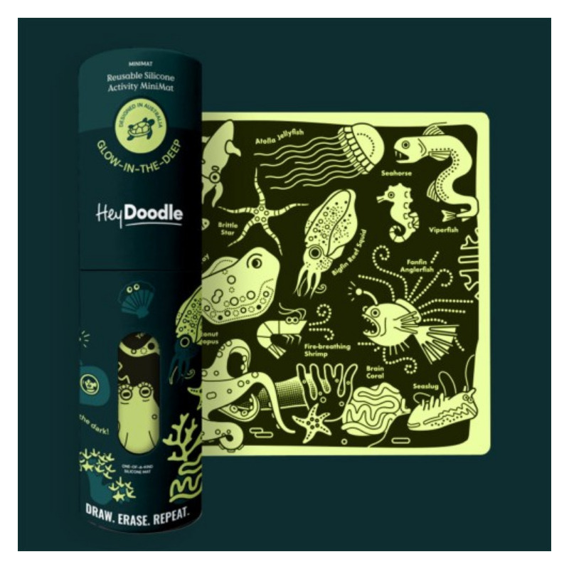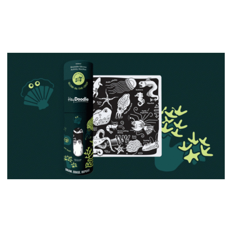 MORSKIE GŁĘBINY świecąca w ciemności silikonowa mata do kolorowania A4 z 3 pisakami zmazywalnymi HeyDoodle 3+