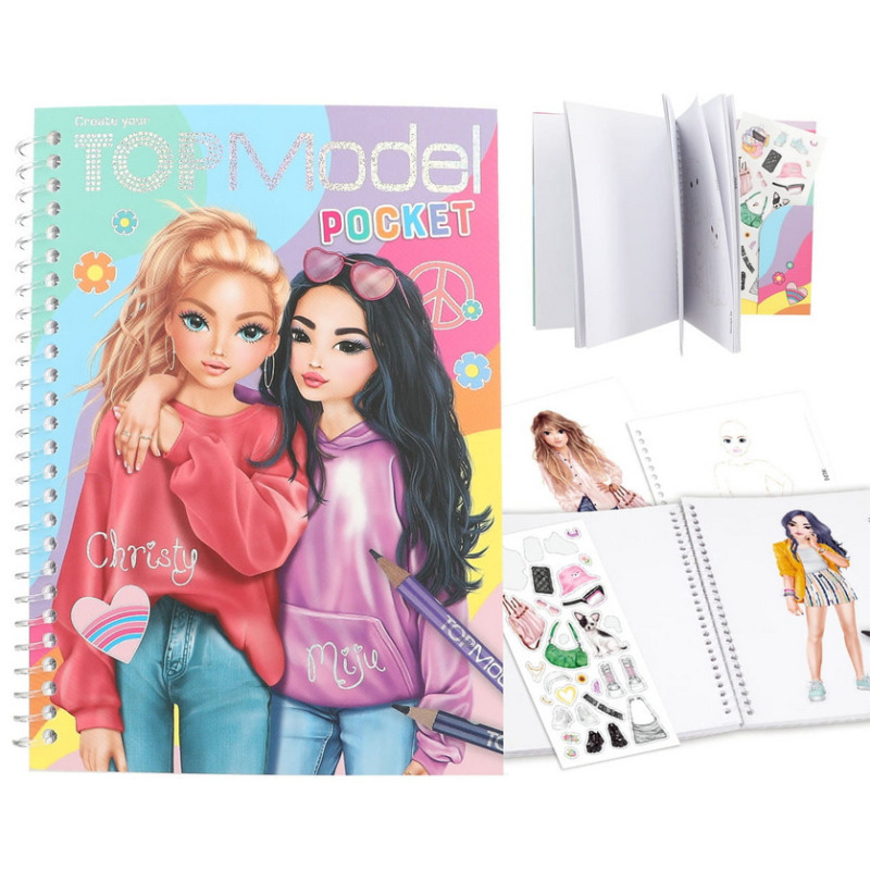 CHRISTY&MIJU kieszonkowy szkicownik ze strojami do kolorowania z naklejkami TopModel Pocket Depesche Germany