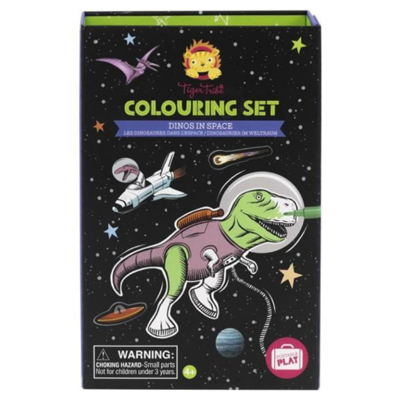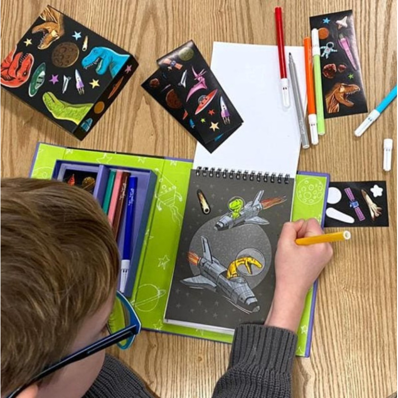 DINOZAURY W KOSMOSIE kolorowanka z pisakami zestaw kreatywyny podróżny Tiger Tribe 4+