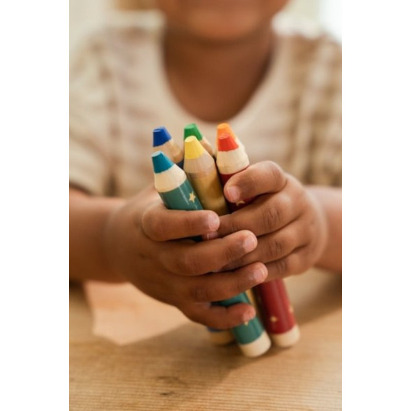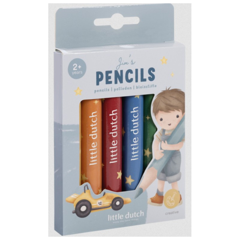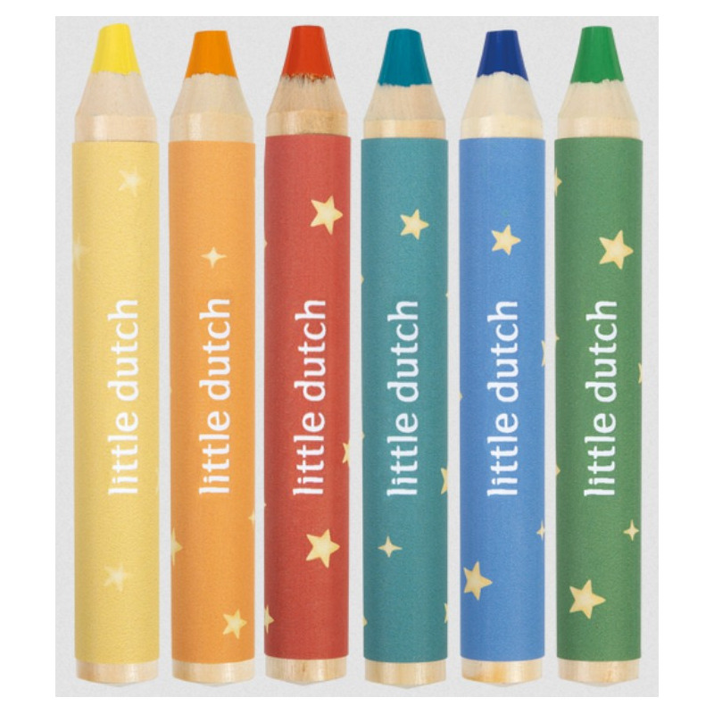 KREDKI OŁÓWKOWE drewniane, grube zestaw 6 kolorów Jim & Friends Little Dutch 2+