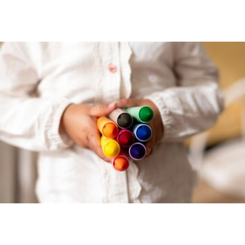 Pozwól swojemu dziecku odkrywać świat kolorów z uroczym zestawem markerów Little Dutch! Ten komplet 8 krótkich, grubych markerów w delikatnych, pastelowych odcieniach został zaprojektowany specjalnie dla małych rączek - idealny do pierwszych artystycznych prób i wspólnej kreatywnej zabawy.