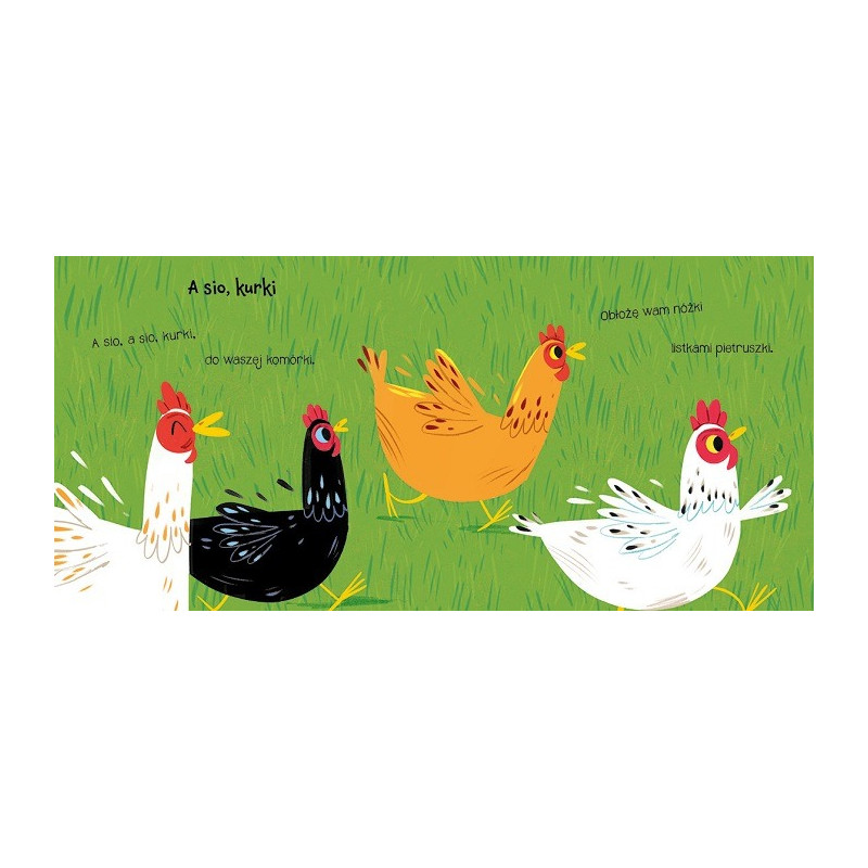W książeczce znajdują się m.in. rymowanki: "A sio, kurki", "Ele, mele-zjedz morele".
