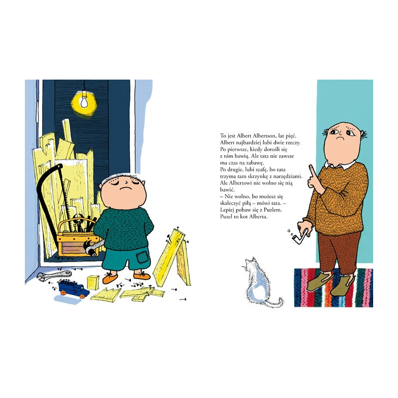 Albert Albertson mieszka z bardzo miłym tatą i kotem Puzlem.