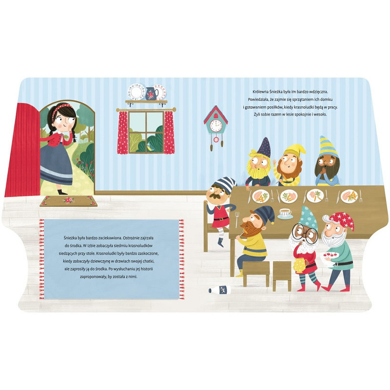 Książka zawiera audiobook z tekstem baśni odtwarzany po naciśnięciu przycisku po każdej rozkładówce.