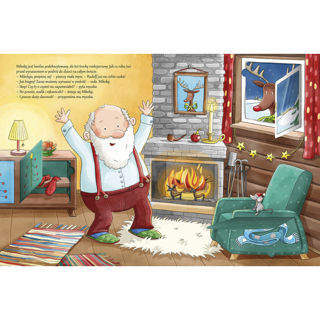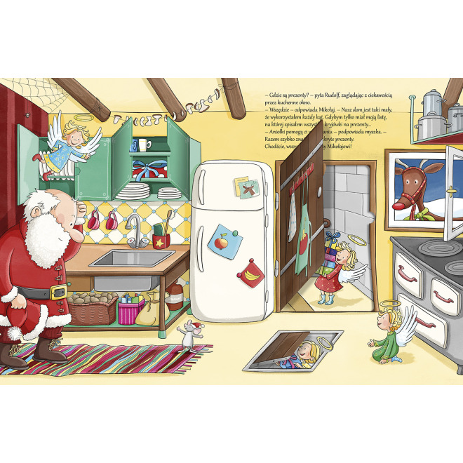 Jest Wigilia, tuż przed rozdaniem prezentów. Chodźmy, Rudi – woła Święty Mikołaj. – Jedziemy do dzieci! Ale chwileczkę – czy sanie nie są trochę za lekkie? Gdzie są prezenty? Święty Mikołaj tak dobrze je schował, że prawie o nich zapomniał! Ukrył je w całym domu i teraz nie tak łatwo je znaleźć.