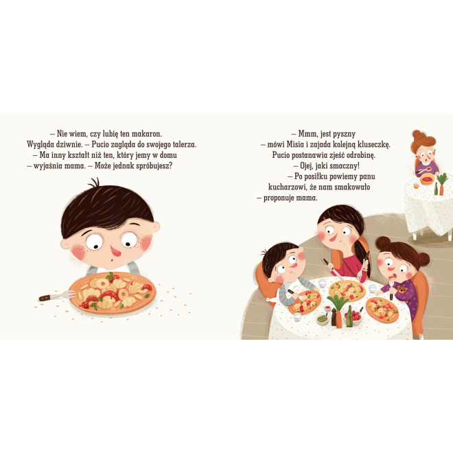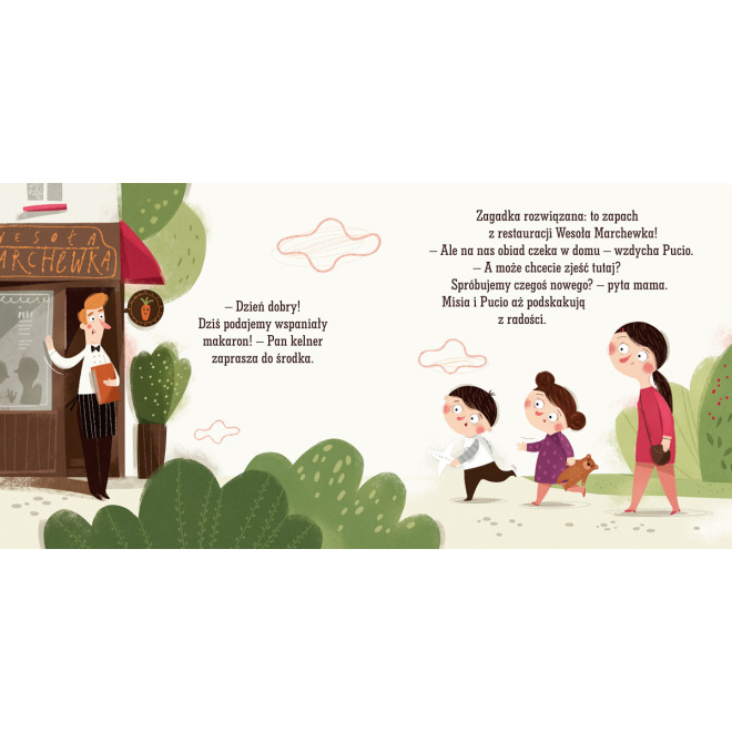 Pucio postanawia spróbować dania w restauracji Wesoła Marchewka. Zamówiony makaron wygląda inaczej niż ten jadany w domu, ale smakuje wyśmienicie! Na dodatek kucharz daje dzieciom przepis na pyszne placuszki,