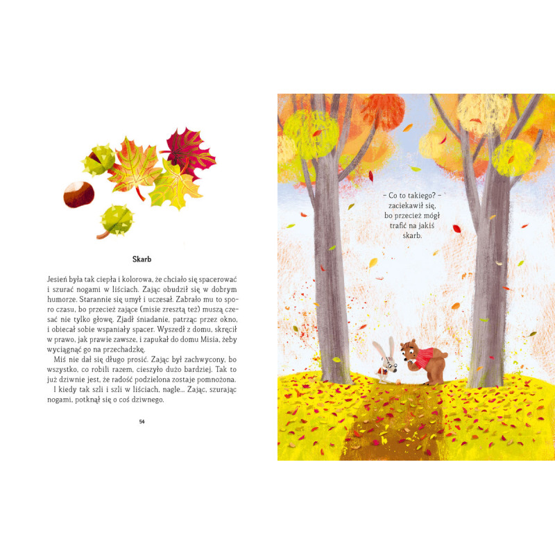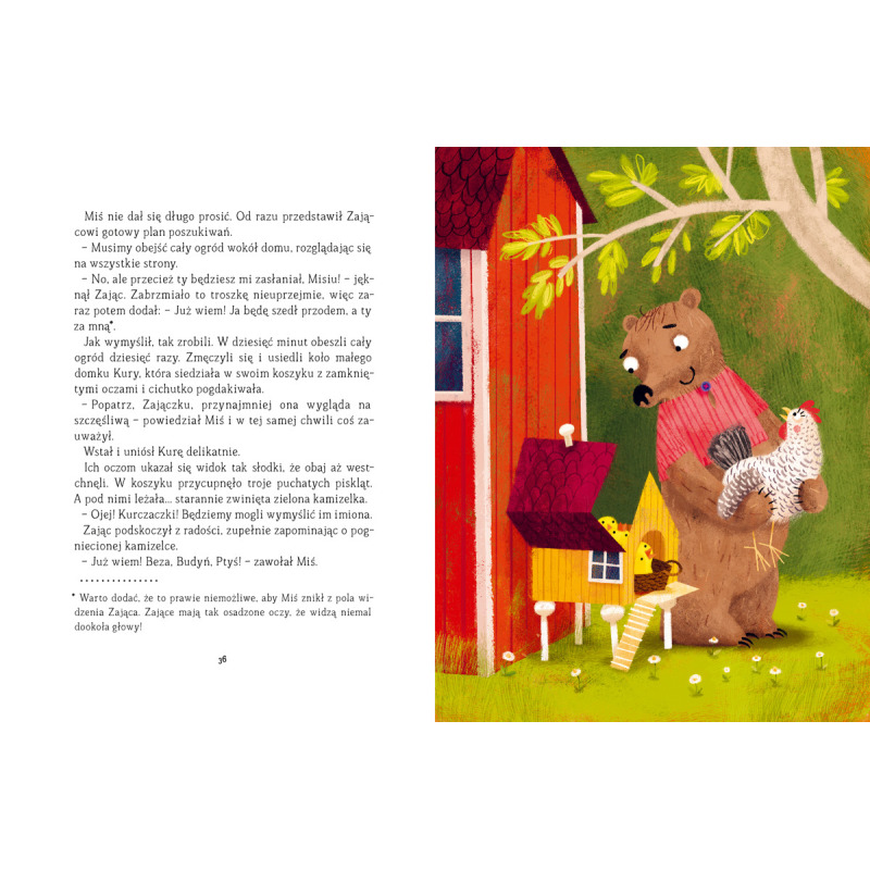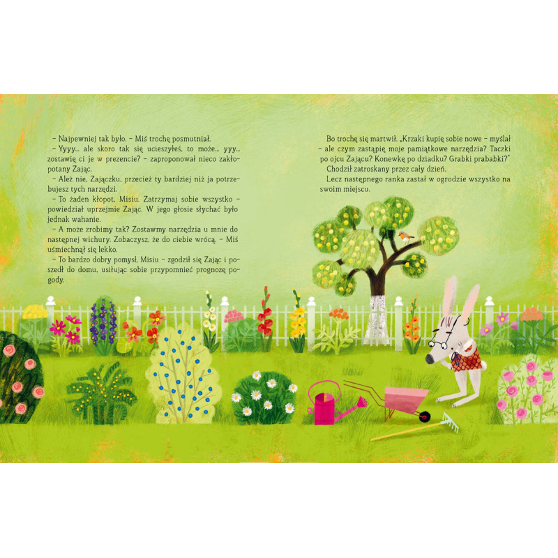 Miś i Zając są najlepszymi przyjaciółmi. A także sąsiadami – również najlepszymi! We wszystkim się uzupełniają: jeden lubi ogórki, a drugi miodek, jeden nie widzi z daleka, a drugi z bliska, jeden kocha fotele bujane, a drugi się w nich nie mieści. Zajrzyjcie do środka, jeśli chcecie poznać ich codzienne kłopoty i niecodzienne przygody!
