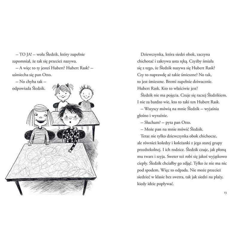 Hubert Rask, zwany Śledzikiem, ma sześć lat. Śledzik nie za bardzo lubi nowe rzeczy i nowe sytuacje. Poznajemy go w momencie, kiedy jego życie diametralnie się zmienia. Bo czy świat nie staje na głowie, kiedy w domu pojawia się młodsze rodzeństwo i kiedy w dodatku rozpoczyna się pierwszą klasę?
