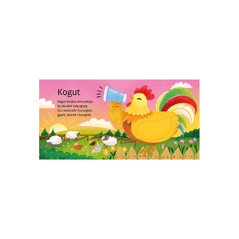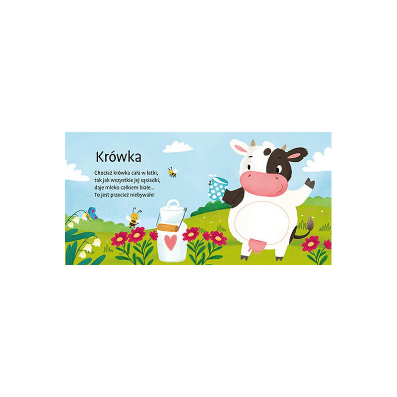 Urocza kartonowa książeczka dotykowa dla maluchów – na okładce i na kolejnych stronach znajduje się wkładka sensoryczna. Różne faktury wkładek zapewniają przyjemne wrażenia sensoryczne. Zabawne ilustracje i sympatyczne wierszyki angażują do zabawy i poznawania świata zwierząt. Dzięki niej dziecko dotknie zwierzątek, przekona się, jakie są mięciutkie, a także pozna ich nazwy. Książka zawiera wesołe wierszyki, które sprawią małemu czytelnikowi mnóstwo frajdy. Każdy maluszek z pewnością chętnie sprawdzi, jakie w dotyku są królik, kogut lub owieczka!