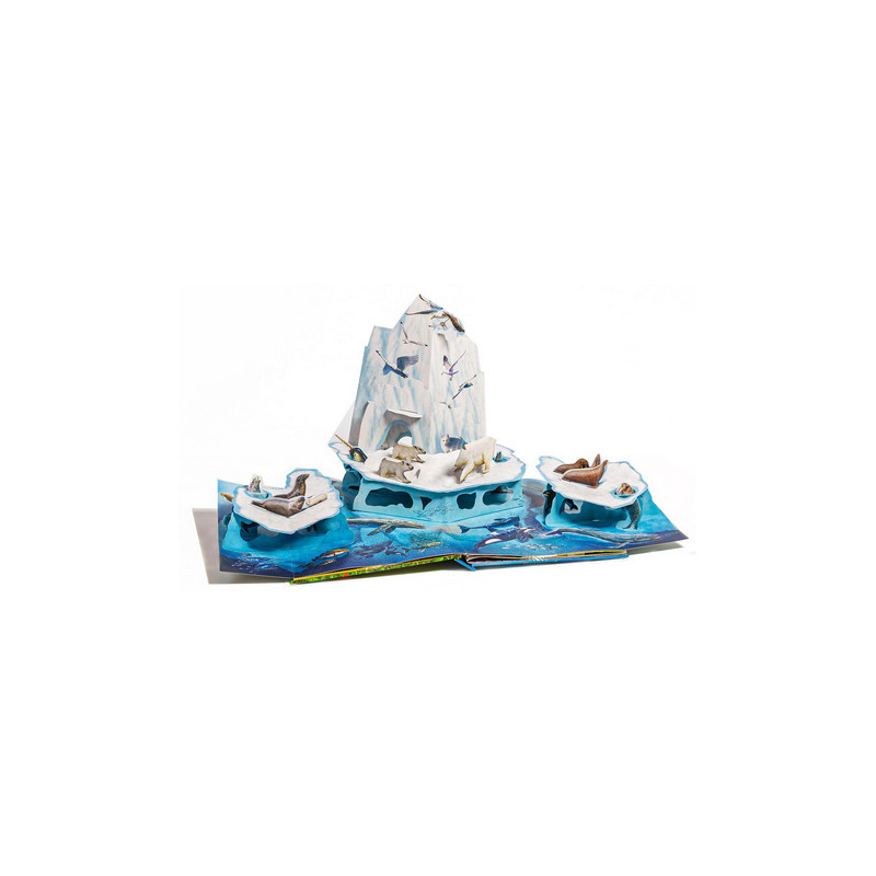 Ta zaskakująca książka przenosi czytelnika w fascynujący świat zwierząt. Spektakularne, rozkładane zwierzęta 3D zaprojektowane przez Davida Hawcocka, mistrza inżynierii papierniczej, „ożywają” i zabierają czytelnika na afrykańską sawannę, w wysokie góry albo do najzimniejszych miejsc na Ziemi. Realistyczne zwierzęta w ich naturalnych środowiskach życia oraz interesujące informacje sprawiają, że książka jest stymulującą lekturą, a także świetną okazją do zabawy.