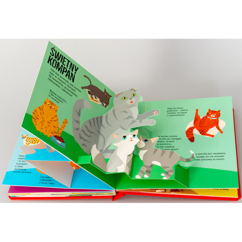 Jak nazywa się japoński kot przynoszący szczęście? Po co kotom wąsy? Czy koty widzą w ciemności? W tej książce znajdziesz odpowiedzi na wiele pytań. Książka z serii POP-UP zawiera 10 przestrzennych ilustracji, które przeniosą czytelników do świata kotów. Bogactwo interesujących informacji pomoże pogłębić wiedzę o tych zwierzętach, zapewni inspirującą lekturę i doskonałą zabawę.
