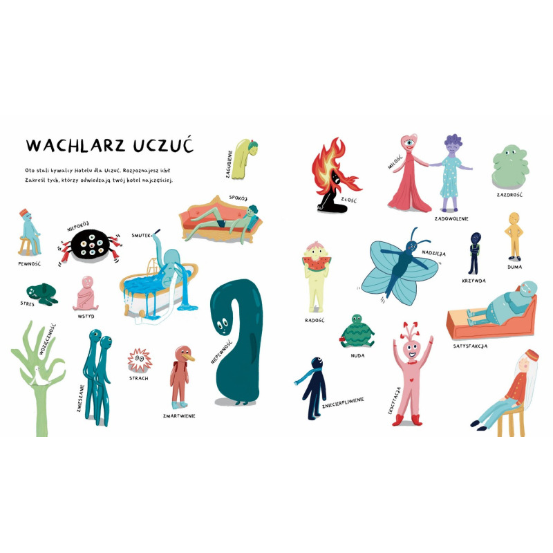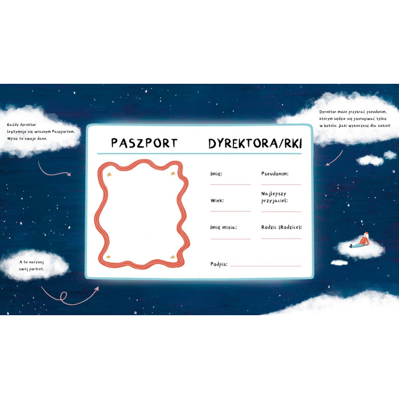 Czeka na ciebie nowa rola: dyrektora twojego własnego Hotelu dla Uczuć. Wypełnij paszport i możesz zabierać się do pracy. W tym uroczym zeszycie ćwiczeń znajdziesz zadania rysunkowe i tekstowe, które zachęcą Cię do bliższego przyjrzenia się różnym uczuciom - od złości, przez niepokój i smutek, po szczęście i miłość.