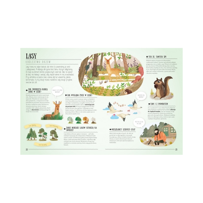 W książce znajdziesz ponad 50 ciekawostek o zwierzętach z całego świata, urocze ilustracje