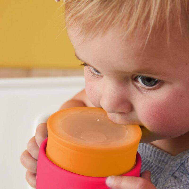 Różowo-pomarańczowy kubeczek 360 zachęci Malucha do nauki samodzielnego picia.