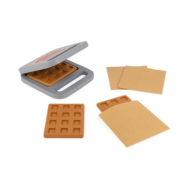 - 3 drewniane „smarowidła” do położenia na nich (czekolada, dżem i twarożek),