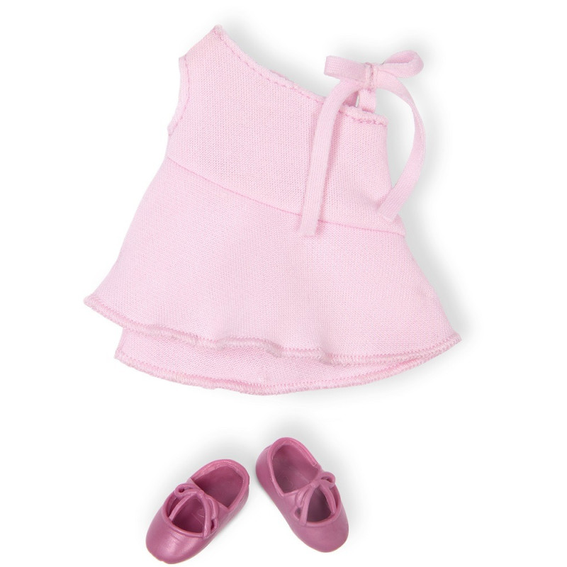 - laleczkę 15 cm, asymetryczną sukienkę z odkrytym ramieniem, bieliznę, buty