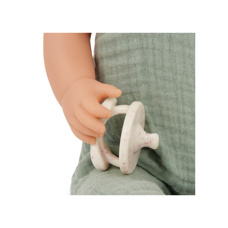 Smoczek mieści się w buzi lalki, dzięki czemu dzieci mogą odgrywać także uspokajanie dzidziusia.