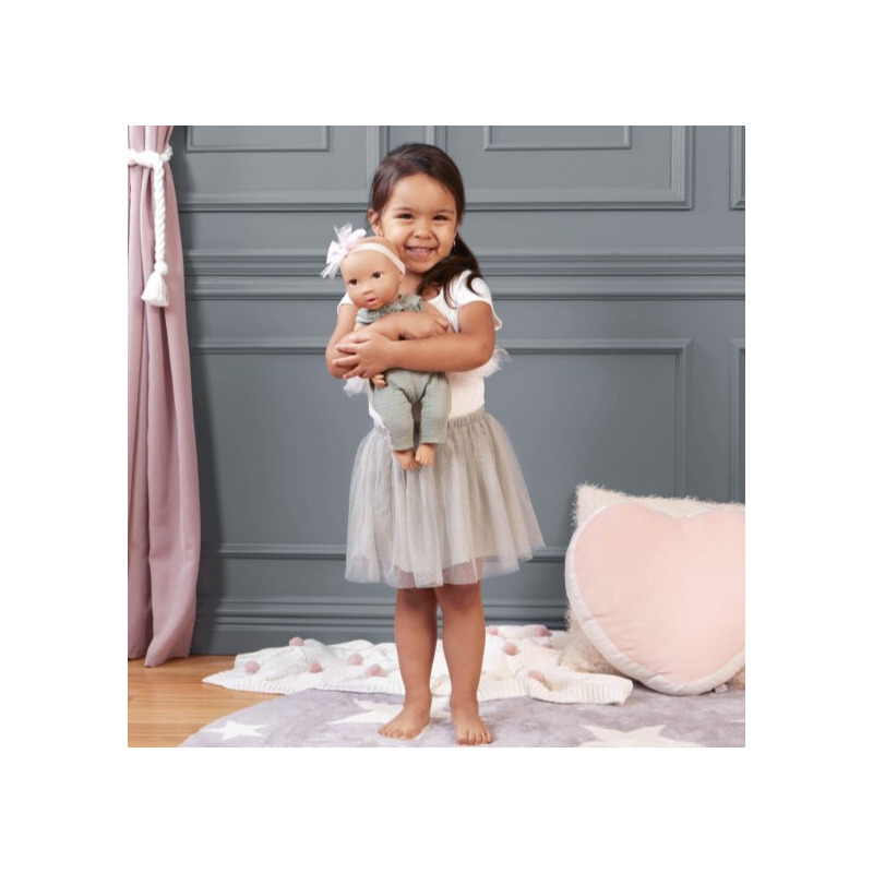 Realistyczna lalka bobas w pięknym muślinowym ubranku i opasce będzie nieodłączną towarzyszką wielu zabaw. Lalka ma miękki tułów, ruchome ręce, nogi i głowę. To dzidziuś wprost stworzony do przytulania i otoczenia troskliwą opieką!