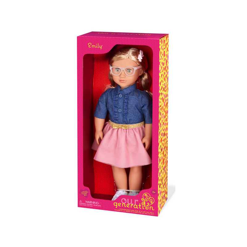 Wyjątkowa lalka Emily z serii OurGeneration z pewnością przypadnie do gustu miłośnikom mody i nie tylko. Lalka ma jasne włosy, ruchome ręce, nogi, głowę i powieki oraz miękki tułów.