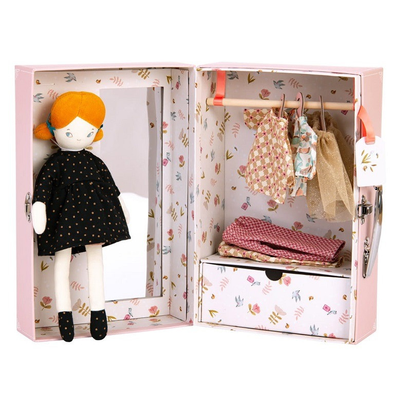 Lalka jest nowa, zapakowana w elegancki kuferek (walizkę).