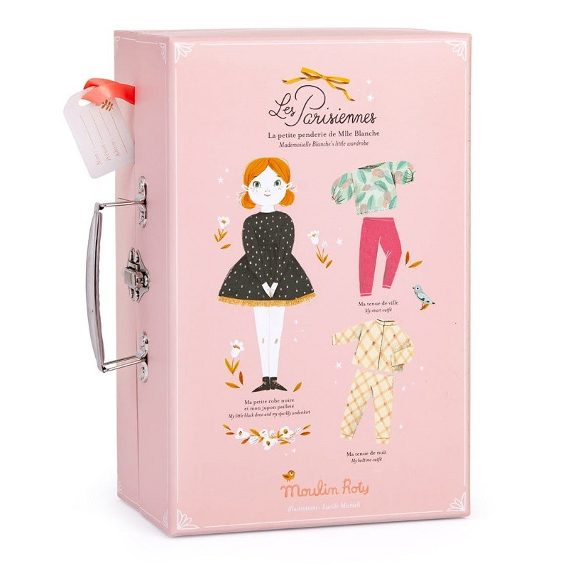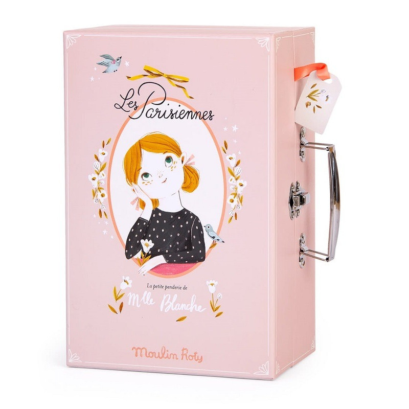 Piękna walizka w środku której znajdziemy lalkę Blanche