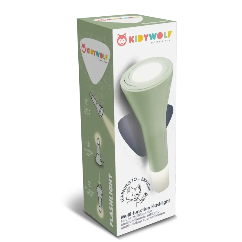 Dzięki trzem trybom świecenia – latarka do ręki, lampka nocna na biurko i lampka do zawieszenia – Kidyflashlight dopasuje się do każdej sytuacji. Ciepłe światło o trzech poziomach jasności (100%, 60%, 20%) stworzy idealną atmosferę do czytania, zabawy czy spokojnego snu.