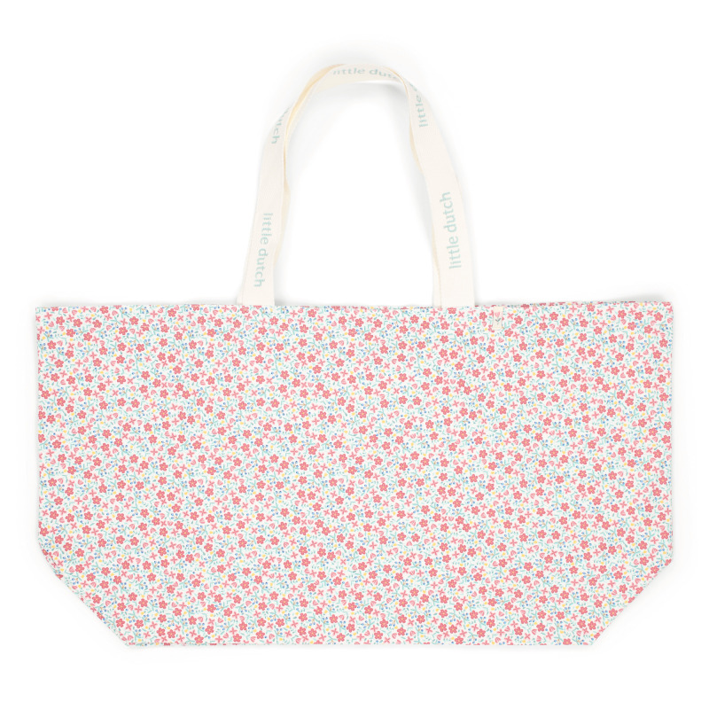 Płócienna torba, wykonana w 100% z bawełny, przyda się do zabrania wszystkiego, co niezbędne do zabaw w piasku i wodze. Ozdobiona uroczym letnim kwiatowym nadrukiem. Wewnątrz znajduje się kieszeń zapinana na zamek, aby bezpiecznie przechowywać dokumenty, czy klucze. Idealna na dzień na plaży lub basenie – stylowa i praktyczna.