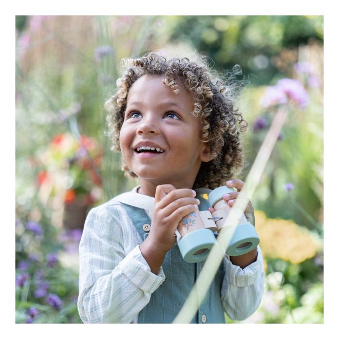 Ta wyjątkowa lornetka zachwyca detalami i pięknymi motywami z kolekcji Ogrodowej Little Dutch. Regulowany rozstaw okularów i wygodny sznurek z zapięciem na rzep sprawiają, że to idealne narzędzie dla małych odkrywców. Pozwól swojemu dziecku spojrzeć na świat z nowej perspektywy!