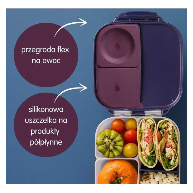 -szczelne przegrody: Dwie komory z silikonowymi uszczelkami zapewniają bezpieczny transport przekąsek, w tym dipów, jogurtów i owoców.