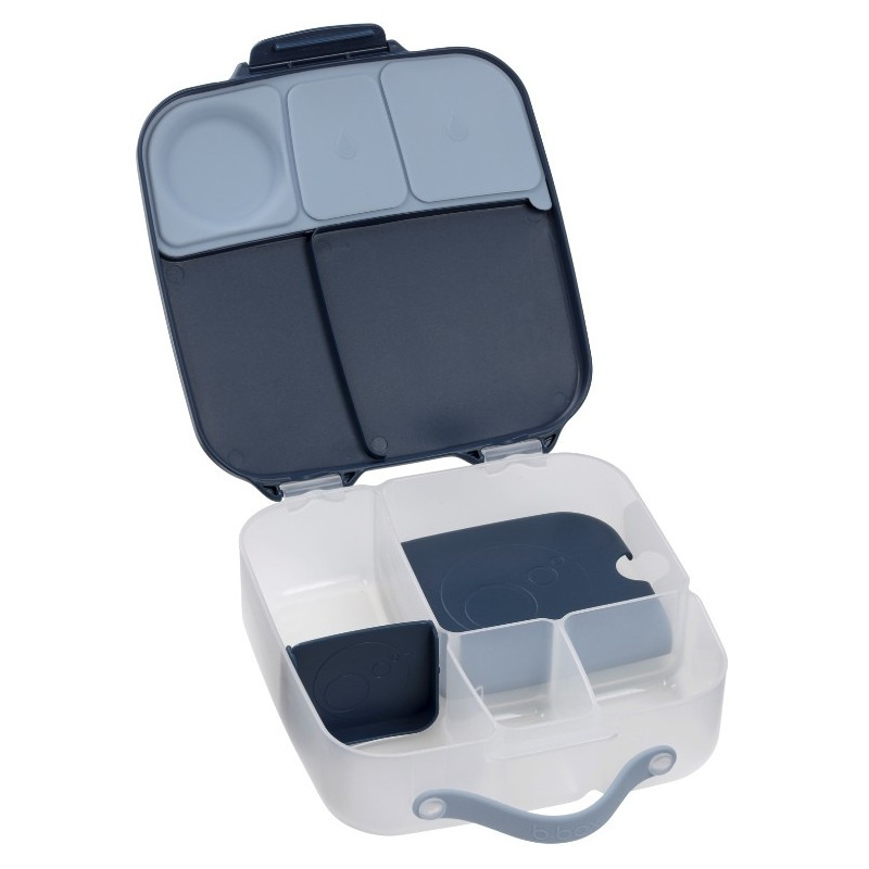 Duży lunchbox z uchwytem do przenoszenia, posiada kilka przegródek różnej wielkości, które można dopasować do pakowanego jedzenia. Wyposażony w miejsce na wkład chłodzący (w zestawie) sprawdzi się jako lunchbox do szkoły, przedszkola czy na wycieczkę.