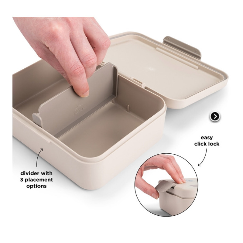 Ten pojemny lunchbox został zaprojektowany tak, aby ułatwić dziecku sięganie po posiłek w przedszkolu, szkole czy na wycieczce. Pokrywę łatwo otworzyć i zamknąć małymi rączkami, a satysfakcjonujące kliknięcie informuje, że jest prawidłowo zamknięta — bez zgadywania, bez rozlewania.